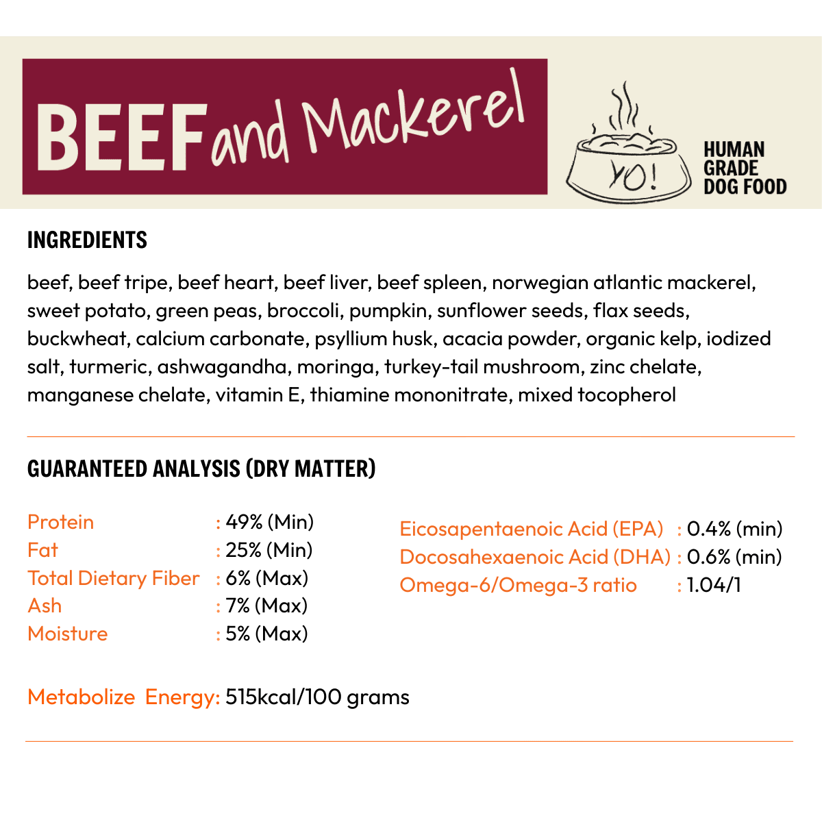 Our nutritional data is derived from laboratory analysis of YoDoggo recipes and is intended as a typical nutritional value. Because we use fresh, natural ingredients, nutrient levels may vary between batches due to seasonal and natural variations in raw materials. All YoDoggo recipes are developed by veterinarians and nutritionists to meet or exceed AAFCO and NRC standards for complete and balanced canine nutrition for adult maintenance. * Not recognised as an essential nutrient by the AAFCO Dog Food Nutrient Profiles.