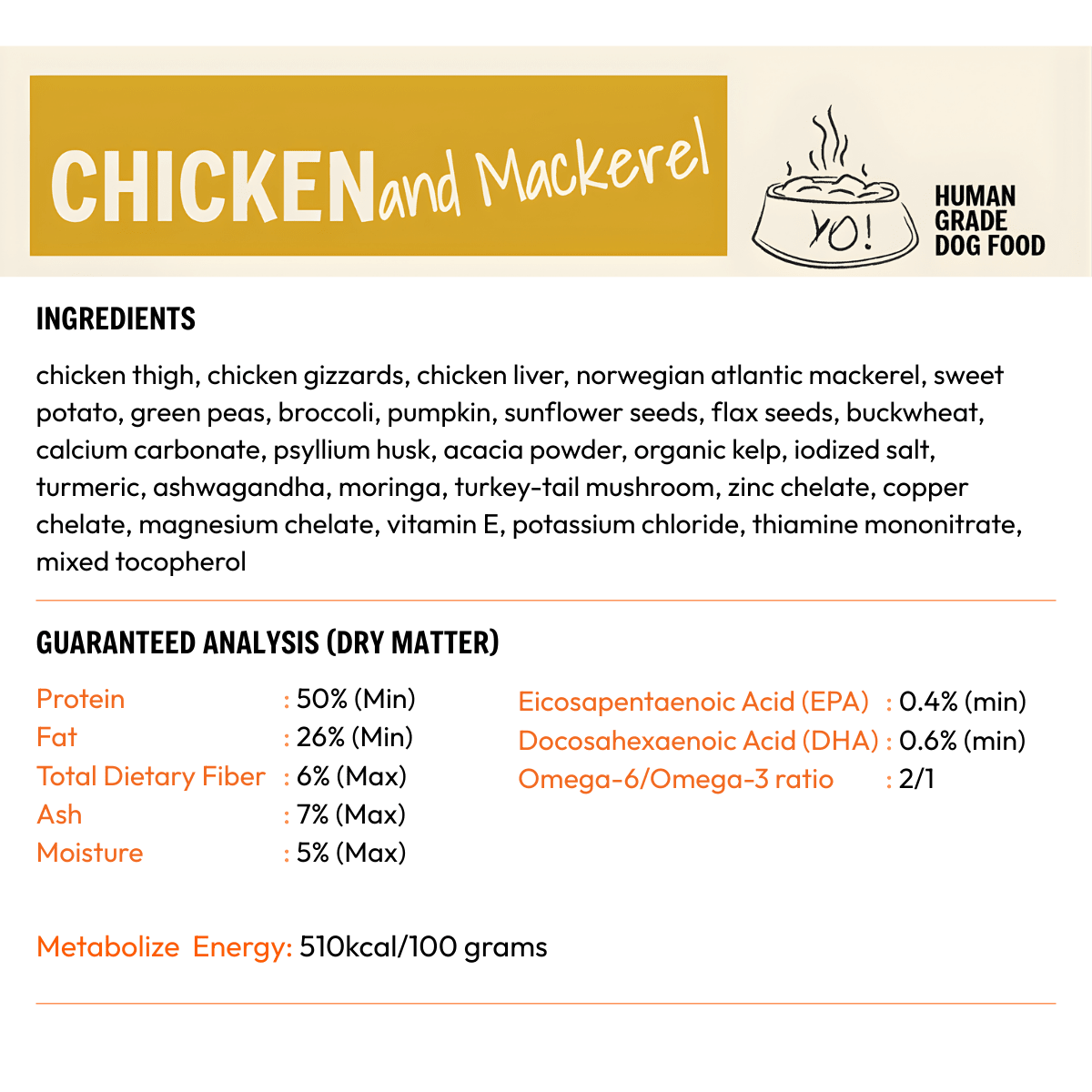Our nutritional data is derived from laboratory analysis of YoDoggo recipes and is intended as a typical nutritional value. Because we use fresh, natural ingredients, nutrient levels may vary between batches due to seasonal and natural variations in raw materials. All YoDoggo recipes are developed by veterinarians and nutritionists to meet or exceed AAFCO and NRC standards for complete and balanced canine nutrition for adult maintenance. * Not recognised as an essential nutrient by the AAFCO Dog Food Nutrient Profiles.