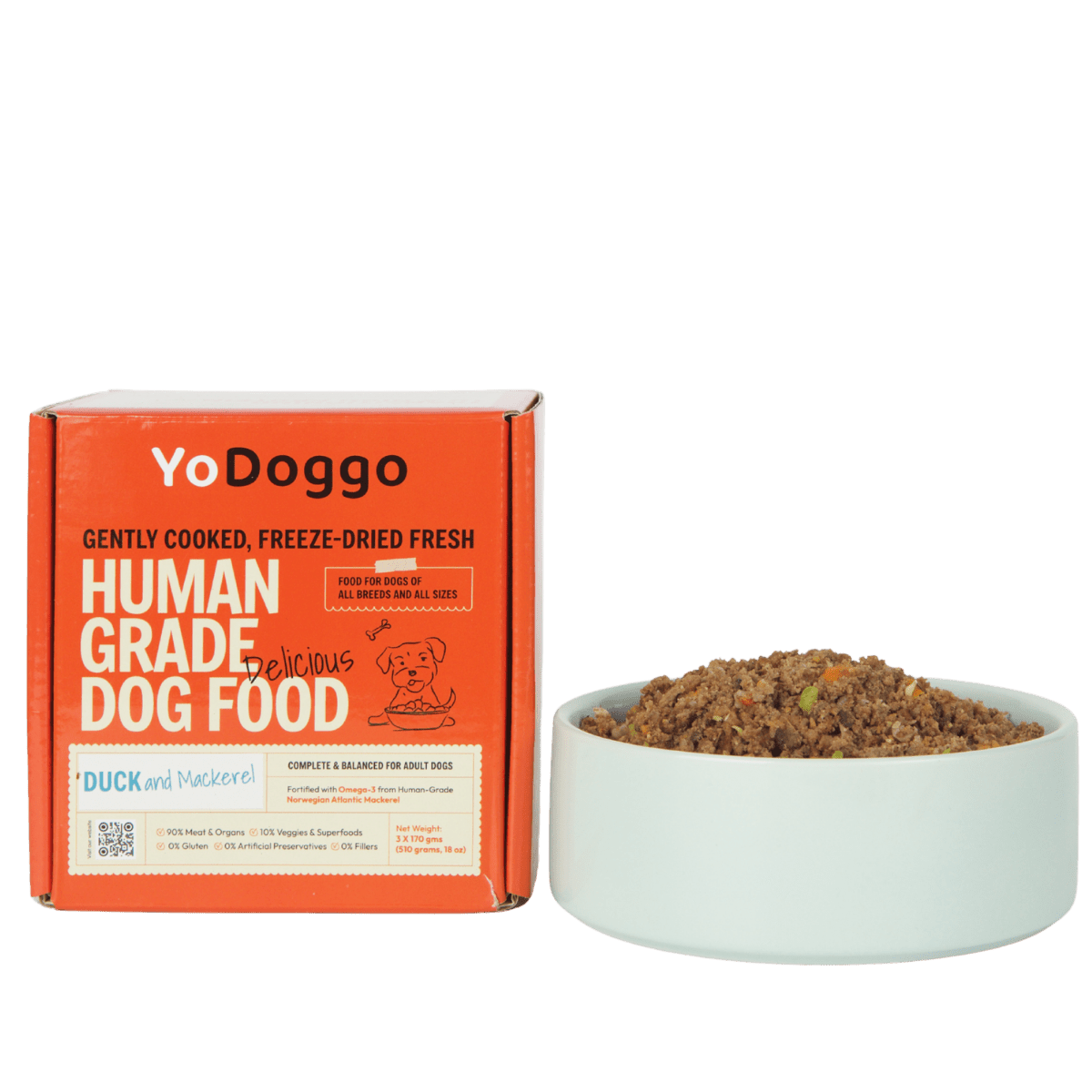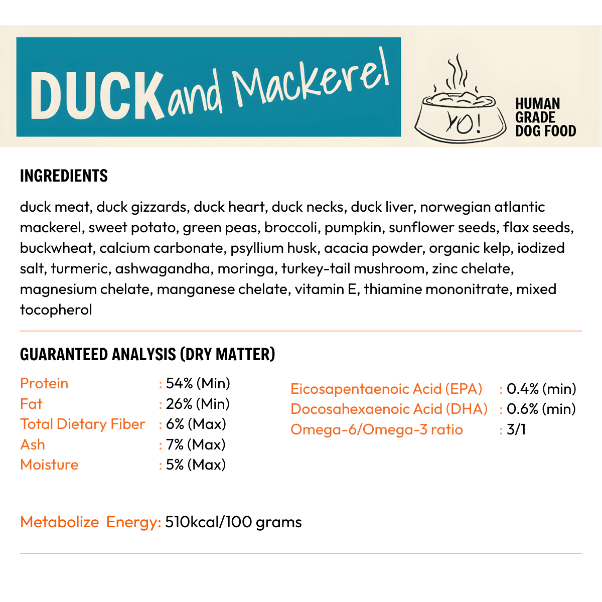 Our nutritional data is derived from laboratory analysis of YoDoggo recipes and is intended as a general guide. Because we use fresh, natural ingredients, nutrient levels may vary slightly between batches due to seasonal and natural variations in raw materials. All YoDoggo recipes are developed by veterinarians and nutritionists to meet or exceed AAFCO and NRC standards for complete and balanced canine nutrition for adult maintenance. * Not recognised as an essential nutrient by the AAFCO Dog Food Nutrient Profiles.