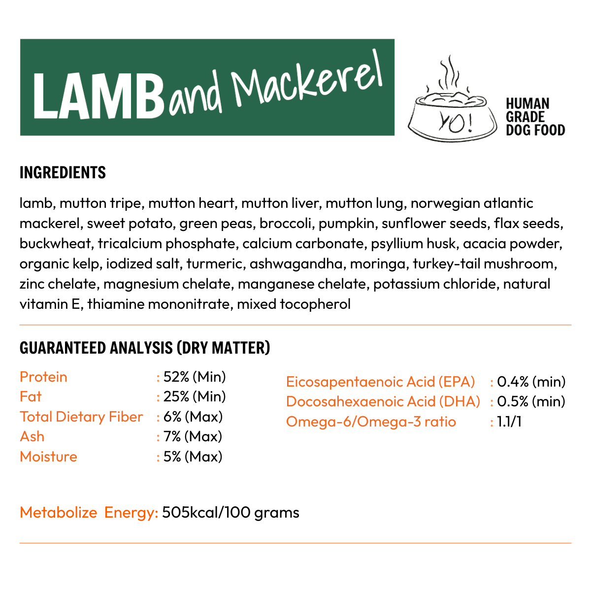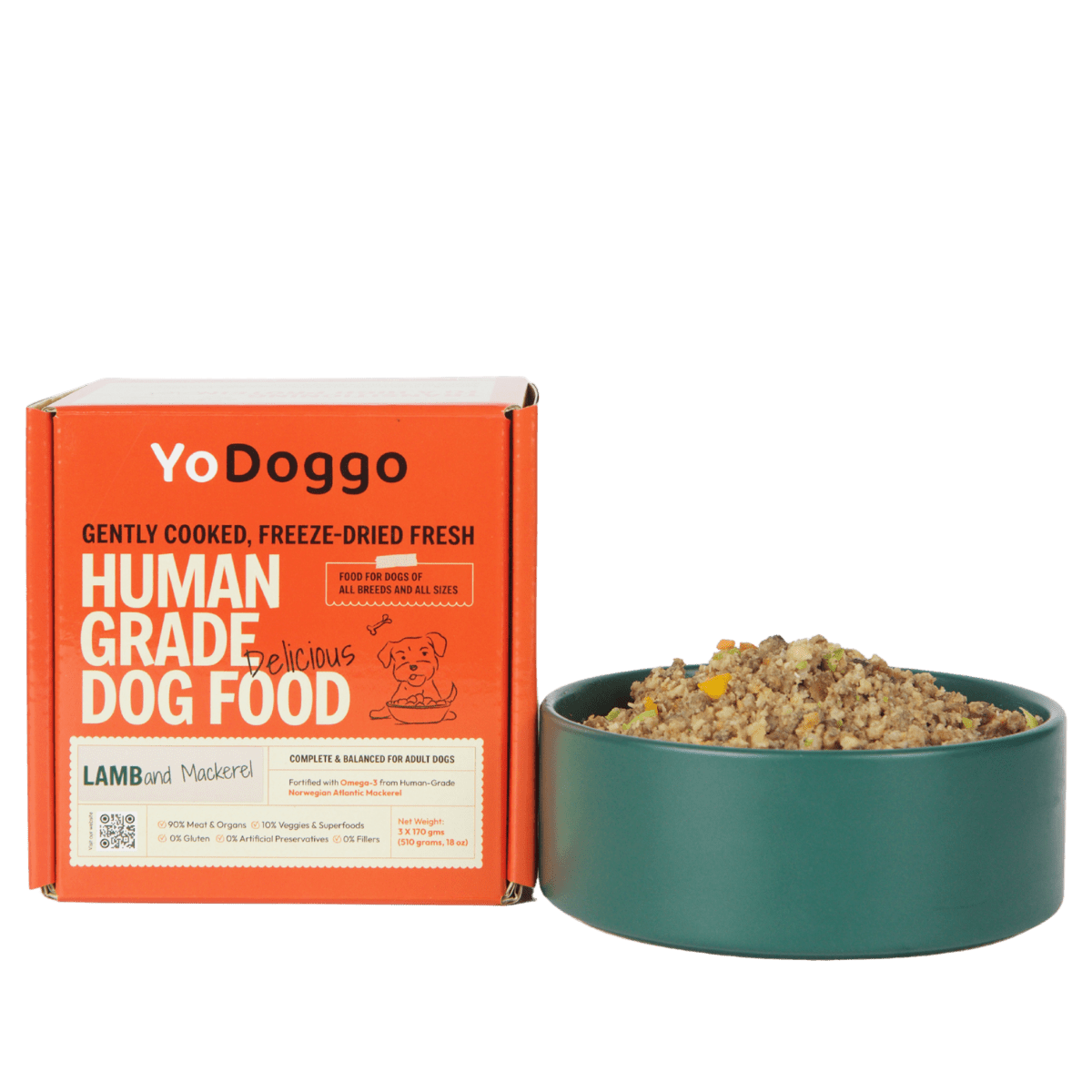 Our nutritional data is derived from laboratory analysis of YoDoggo recipes and is intended as a general guide. Because we use fresh, natural ingredients, nutrient levels may vary slightly between batches due to seasonal and natural variations in raw materials. All YoDoggo recipes are developed by veterinarians and nutritionists to meet or exceed AAFCO and NRC standards for complete and balanced canine nutrition for adult maintenance. * Not recognised as an essential nutrient by the AAFCO Dog Food Nutrient Profiles.