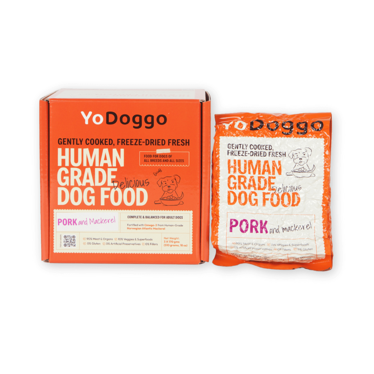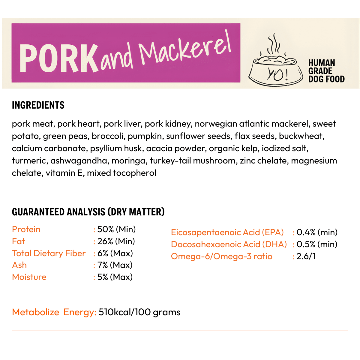 Our Pork & Mackerel recipe combines human-grade pork with omega-3-rich Atlantic mackerel. Gently cooked and freeze dried. Loved by fussy eaters, it’s 90% human-grade animal protein plus superfoods for skin, muscle, and immune health.